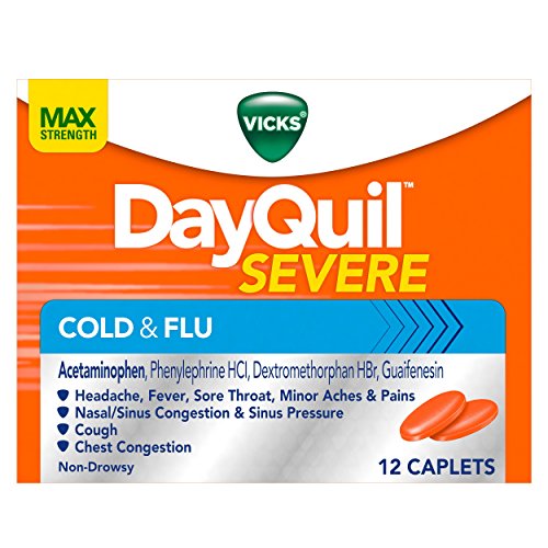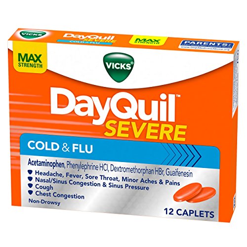 Product Description Vicks DayQuil Severe Cold Flu Caplets - Maximum symptom fighting ingredients to relieve your worst cold symptoms. Among OTC cold/flu medicines. 0
