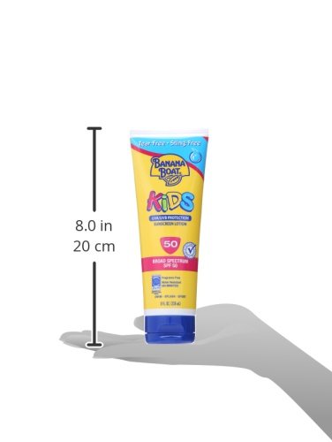 -. Binding : Health and Beauty -. Brand : Banana Boat -. EAN : 0079656107050 -. Feature : Available in light/medium and deep dark color / Water resistant (80 minutes) / Tear-free and sting-free / Hypoallergenic formula / Pediatrician-tested and recommended by the Skin Cancer Foundation -. Label : Energizer Personal Care -. Manufacturer : Energizer Personal Care -. NumberOfItems : 1 -. PackageQuantity : 1 -. ProductGroup : Beauty -. ProductTypeName : BEAUTY -. PublicationDate : 2015-04-05 -. Publisher : Energizer Personal Care -. ReleaseDate : 2015-04-24 -. Studio : Energizer Personal Care -. Title : Banana Boat Sunscreen Kids Tear-Free Sting-Free Broad Spectrum Sun Care Sunscreen Lotion - SPF 50, 8 Ounce -. UPC : 079656107050