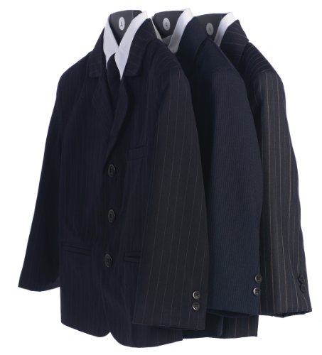Binding : Apparel Product Description 5 Piece Navy Blue Pin-Striped Suit with Burgundy Tie. Perfect outfit for church, christening, blessing, baptism, first communion, weddings, or other special occasions. CHEST IS MEASURED ONE INCH BELOW THE UNDERARM.Please allow 3-5 inches for fitting on chest measurements OUTSEAM IS MEASURED FROM THE WAIST TO THE ANKLE SLEEVE IS MEASURED FROM THE SHOULDER TO THE WRIST SHOULDER IS MEASURED SHOULDER TO SHOULDER STRAIGHT ACROSS THE BACK