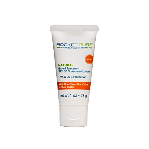 BROAD SPECTRUM: All natural mineral sunscreen helps prevent sunburn and sun damage during outdoor sports activities. SPF 30 Broad spectrum UVA & UVB sun protection, with non-nano natural mineral zinc oxide. Absolutely NO dangerous chemically active sunscreen ingredients like oxybenzone or octinoxate. "White Hot Sunscreen With Zinc Oxide" by Rocket Pure.