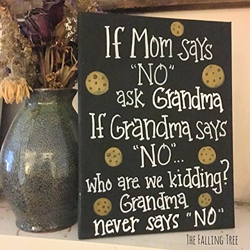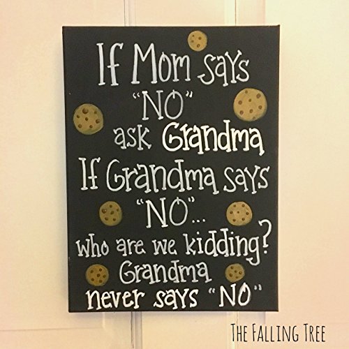 "If Mom says No, ask Grandma. If Grandma says no...Who are we kidding? Grandma never says no" This also has cute chocolate chip cookies painted on it! This makes a perfect Mother's Day, or Birthday gift! This is 9 inches wide by 12 inches high. Each one may vary slightly from the photo, as each is custom made.