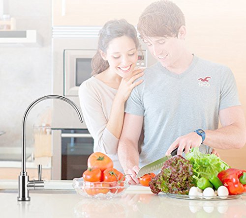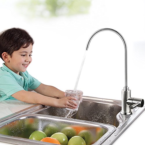 Drinking Water Faucet Brushed Nickel for Kitchen Sink Purifier Filter, 1/4-inch Tube, Lead-Free, By Velraptor