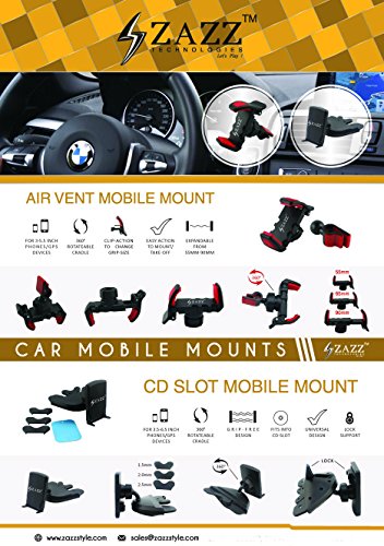 ZAZZ Universal GPS/Smartphone CAR AIR VENT Mount Lightweight Expandable 360 degree Rotatable Cradle Adjustable Angle Easy Use Compatible Apple iPhone,Samsung,Sony,HTC,Lenovo,Motorola,One+,Windows