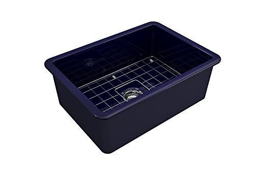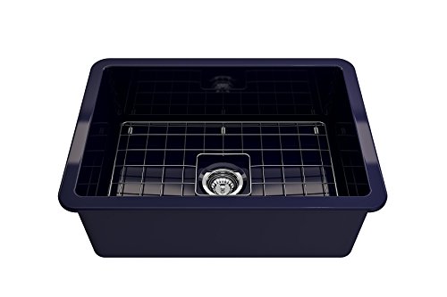 Sotto Undermount Fireclay 27 in. Single Bowl Kitchen Sink with Protective Bottom Grid and Strainer in Sapphire Blue