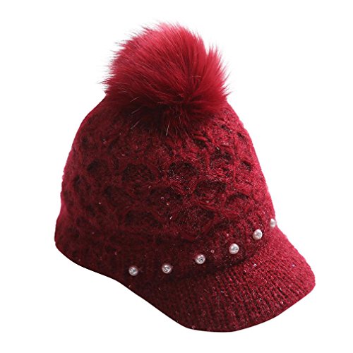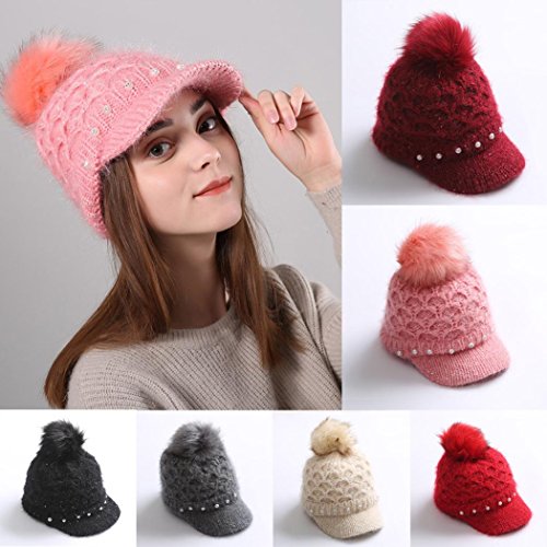 (Besde)/Accessories/Hats/DIRECT FROM USA/Besde Women Warm Crochet Winter Knit Wool Pearl Peaked Caps Hat Pom Pom Bulb
