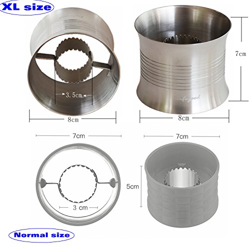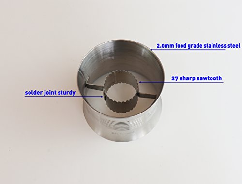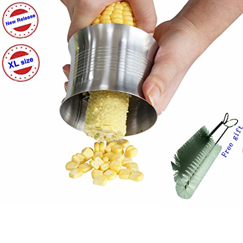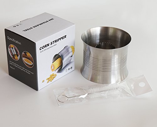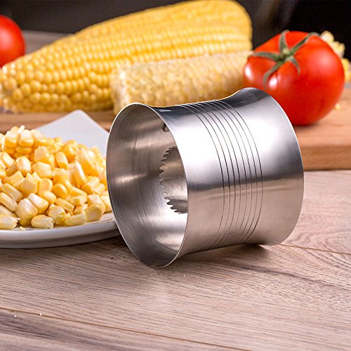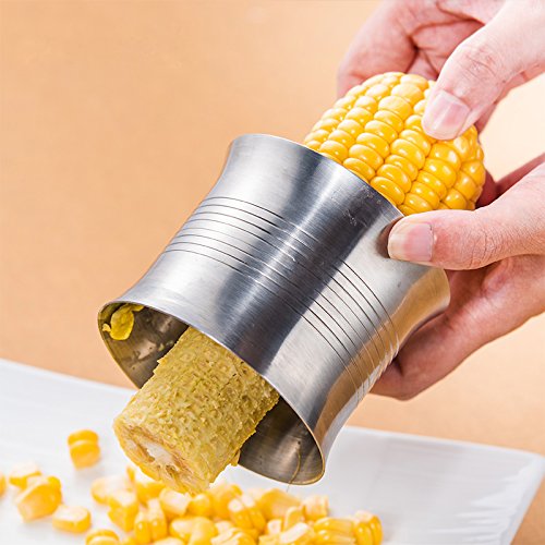 This is a stainless steel corn kernel cutter that has been resized to fit most corn cobs. How to use? Step1: Grasp the corn with one hand and the corn stripper with the other hand. Step2: Insert the corn and push hard as turning the cob. Step3: Corn kernels easily fall off from the cob. Food grade stainless steel is durable, safe and easy to clean. 0 |