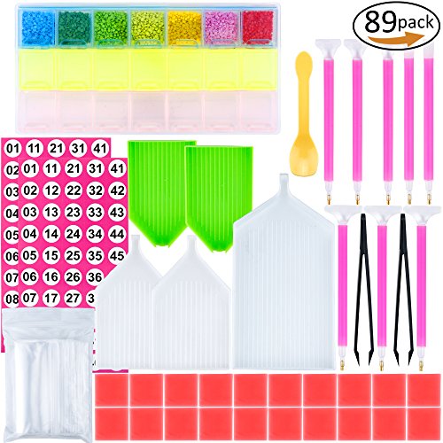 89 Pieces DIY Diamond Painting Set Including Diamond Quick Point Pen,Glue,Plastic Tray,Plastic Tweezer Label Stickers and Diamond Embroidery Box