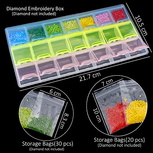 - 21 SLOTS DIAMOND PAINTING BOX - Designed with 2 1compartments,great for store diamond painting accessory.(Size:4.1''X8.5'')
