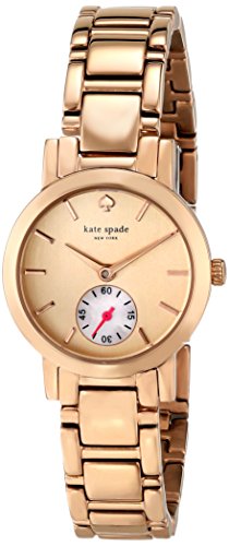 -. Feature : Rose gold-tone watch featuring round dial with logo at 12 o'clock, subdial at 6 o'clock, and link bracelet / Japanese quartz movement with analog display / Case diameter: 12mm / Features mineral crystal dial window, deployant buckle closure, and baton-shape hour markers / Not water-resistant