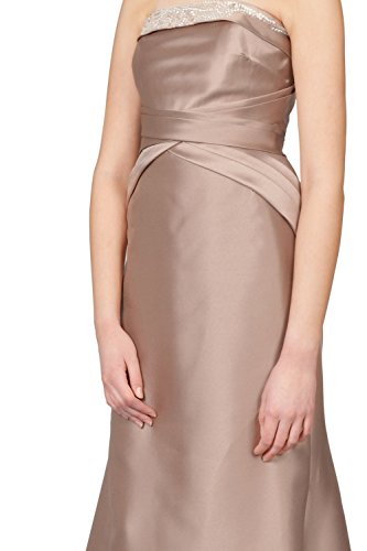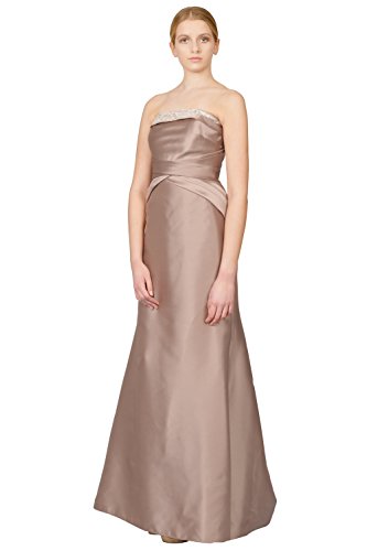 The ultimate in refined evening looks: a strapless, column silhouette marked with elegant and pleated waist draping. Strapless. Folded top detail with crystal beading. Interior top grip band for extra support. Boned bodice design. Pleated and draped waist accents. Concealed back zipper. Hi-lo hemline. Lined. About 59" from top to hem.