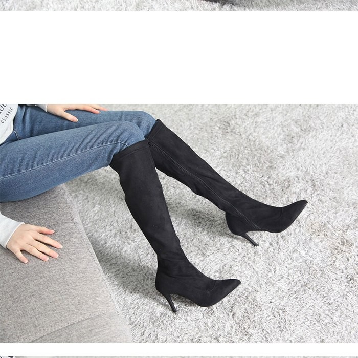 商品名:ロングブーツ レディース ピンヒール ポインテッドトゥ スエード調 2017 秋冬 ファッション 靴 婦人靴