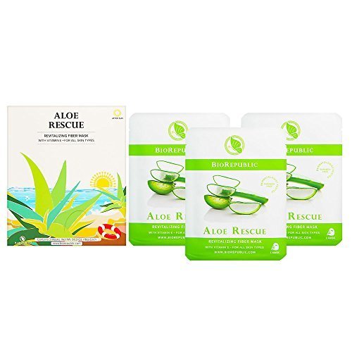 -. Feature : Aloe Rescue: Buy BioRepublic Masks Peels - Mask infused with natural aloe vera juice and vitamin E: Soothes dry skin, perfect for after sun use. Provides immediate hydration. For healthy, revitalized, and lush skin.A biodegradable fiber mask that snugly fits the contours of your face, ensuring optimal delivery of vital nutrients to the skin.Details provided by BioRepublic / Item Condition: 100% authentic, new and unused. BioRepublic Aloe Rescue Revitalizing Fiber Mask Contains 3 Masks. / Type: Mask