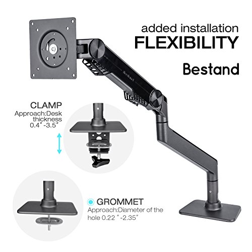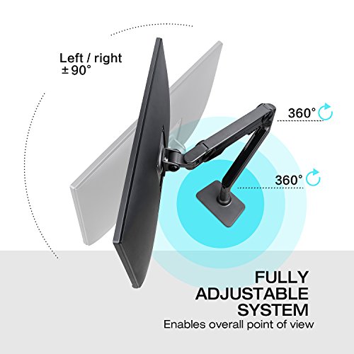 Arm Flexibility: Adjust up to 23.5" of arm extension through two freely rotating joints and 18.5" of height through the built-in gas spring arm which suits various monitor weights