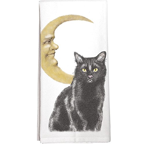 -. Feature : Black cat and crescent moon graphic, perfect for fall and Halloween / Designed and P.R.Inted in the USA on premium towels from India; perfect for lint-free drying / 100% hand-loomed cotton flour sack with finished edges and mitered corners / Generously sized at 30 x 30 inches; matching napkins also available / Machine wash cold, air or tumble dry low; iron on reverse side