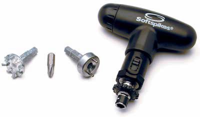 Studio : Softspikes Publisher : Softspikes Binding : Misc. Product Description CleatKaddy...The Ultimate Golf Wrench! CleatKaddy removes or installs all golf spikes and cleats. A powerful ratcheting wrench to handle even the most difficult cleat changes. The versatile CleatKaddy makes it convenient and easy to change out metal spikes or regularly replace your plastic cleats. Just put any of the bits on the end of the ratchet or your power drill and you're just seconds away from replacing your cleats.Softspikes CleatKaddy Golf Wrench features: * Made of rugged, durable reinforced plastic * Versatile and easy to use * Reinforced metal bits remove and install all golf cleats and spikes in seconds * Powerful ratcheting wrench handles any cleat change * Large, easy-to-grip handle stores all the bits * T-handle ratchet fits comfortably in your hand * Power bits to remove and install both metal spikes and plastic cleats * Includes (1) Standard Bit and (1) Extractor Bit CleatKaddy...For Quick, Reliable Spike Removal Or Installation! 0