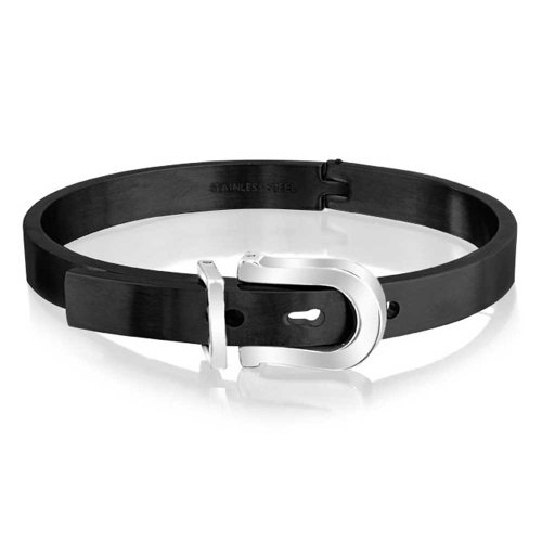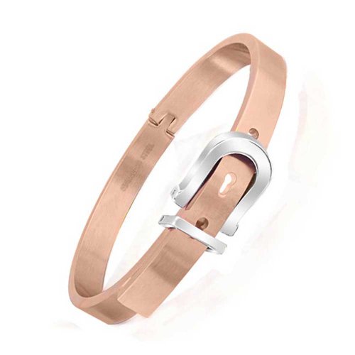 -. Feature : Buckle Bangle Bracelet / Buckle Closure / Material: Black Plating, Gold Plating, Rose Gold Plating, Stainless Steel / Measure: 8.5 inch L / Weighs 30.5 Grams