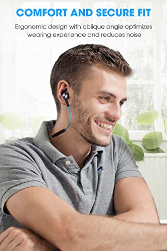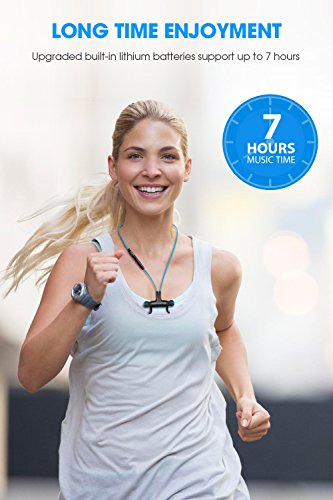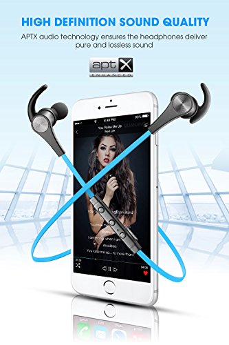 -. Feature : [Bluetooth 4.1+aptx]: Supports two connected devices simultaneously and allows to automatically connecting after paired successfully for the first time, high-fidelity stereo sound quality with aptx codec. The Headphones are compatible with most cell phones, iPhone and Android. / [Long-Lasting Usage & Lightweight Design]: Up to 6 hours talk time / music time (Playtime varies according to volume level and audio content). With 150 hours standby time and 1-2 hours charging time. Since it has a super Light Weight Design, the net weight is only 3.52 ounces; you will feel nothing for gym and workout. / [Built-in Magnets Design]: You can attach the two headphones together when not using, and wear like a necklace around your neck, a convenient way to carry around when you don't need them. / [Sweat Resistant]: Built for your active lifestyle, the earbuds are rated IPX Level 4 and can withstand dripping sweat. Ergonomic design optimized for ultimate wearing comfort to match your active lifestyle like running, jogging, cycling, driving, camping, hiking gym exercise and other outdoor sports / [In-line Mic and Volume Control]: The headphones have a mute button and slide volume control button perfect for you answer the call or listening.