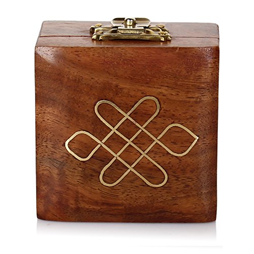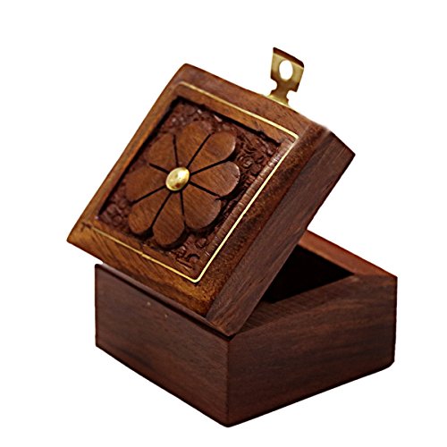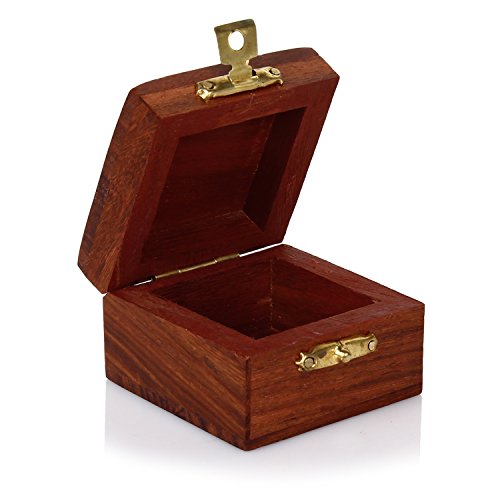 -. Feature : Jewelry Box crafted from premium sheesham wood with brass inlay work / Versatile Small Wood Box measuring 2 inches in length by 2 inches in width by 1.5 inches in height / Store your personal jewelry like earrings, chains, pendants or rings and family heirlooms in royal style with this box and use it adorn your dressing table / Traditional Jewelry Box hand made by the skilled artisans of Saharanpur- India's largest hub for high quality wooden artifacts / Perfect for house warming gift, wedding anniversary gift, Christmas gift, thanksgiving gift, valentine's day gift, birthday gift, holiday gifts, mother's day gifts, graduation gifts and Easter gifts
