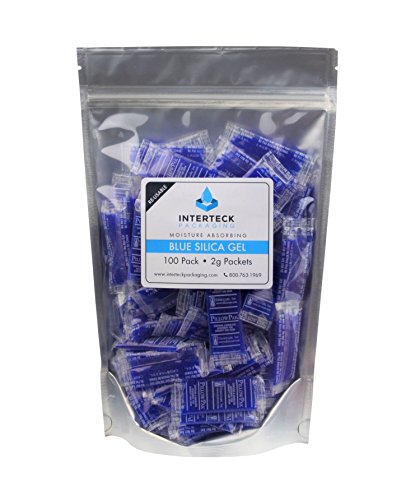 100 Pack of 2gm Blue to Pink Indicating Silica Gel Packets Desiccants [2" x .85"] - RECHARGEABLE by Listing Instructions