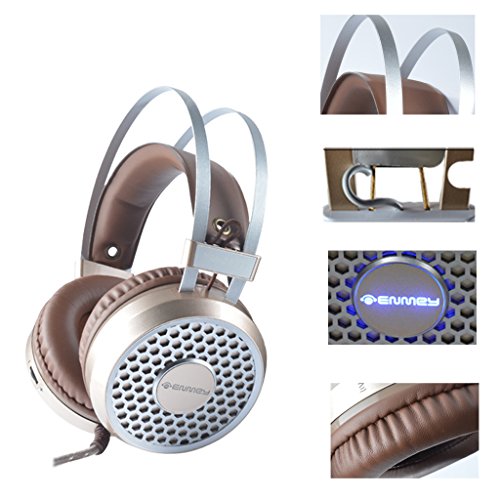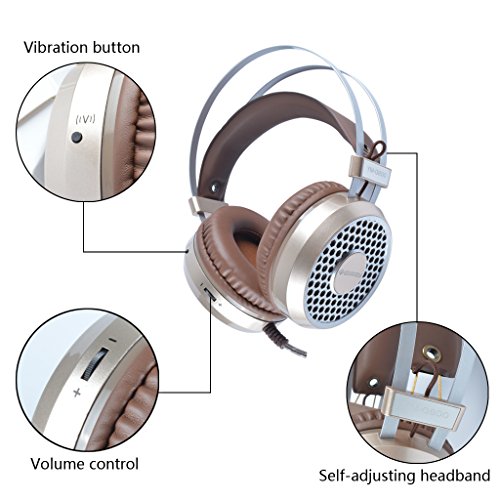 -. Title : Professional Gaming Headset Comfortable 3.5mm Usb Stereo Wired PC Gaming Headband Headphone with 40MM Hifi Unit, Super Bass Vibration, Built-in Microphone and LED Light (Brown)