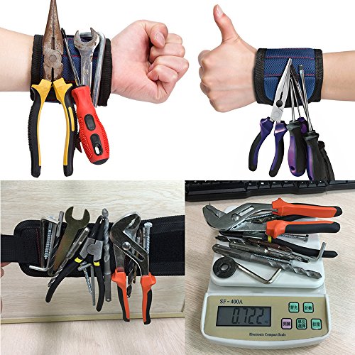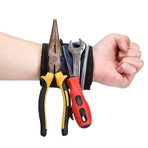 Magnetic Wristband,Adjustable Magnet Arm Band with 10 Strong Magnets Tool Belt,Gifts for DIY Handyman,Father/Dad, Husband, Boyfriend, Men, Women (Blue)