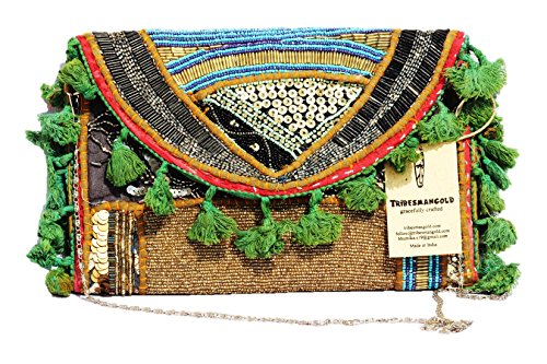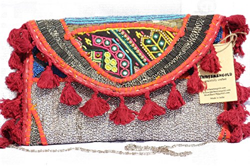 TRIBESMANGOLD-- Sling cross body bag, Ethnic Handmade Embroidery, Indian Stone studded Sling bag, crossbody bag cum Banjara.