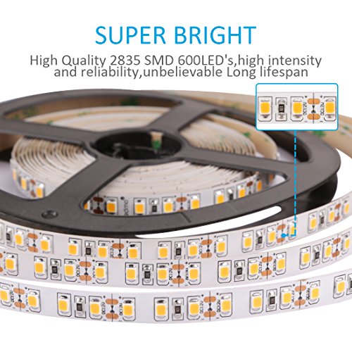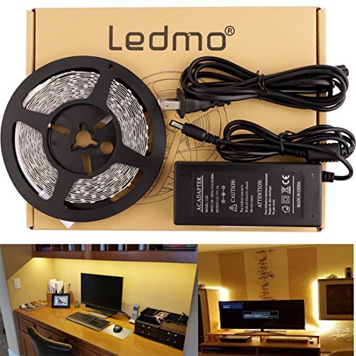 LEDMO Flexible LED Light Strip Kit,LED Tape,Super Bright 600 Units SMD2835 LEDs,Non-Waterproof,Warm White,16.4Ft/5M,LED Strip light+12V 5A Power Supply
