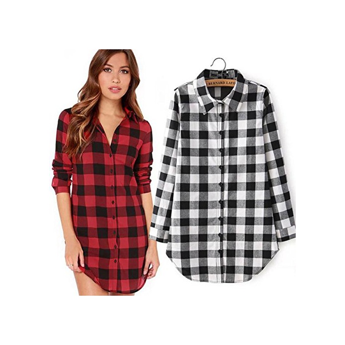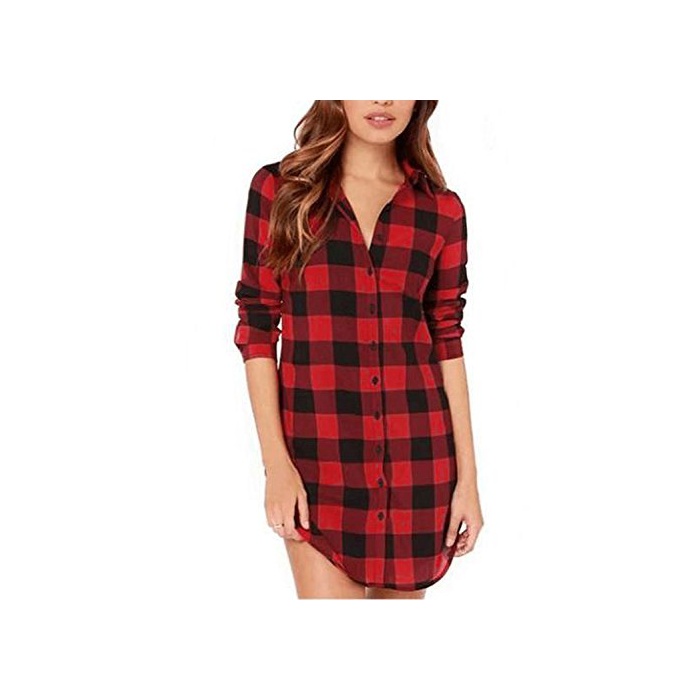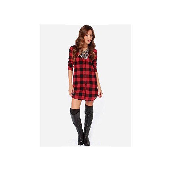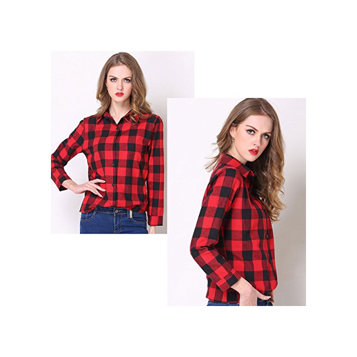 【MIKA&MAYA】긴 소매 깅엄 체크 셔츠 레이디스 웨어 캐주얼 톱스 (M,레드)