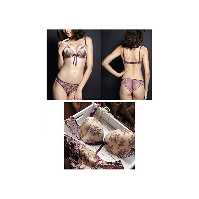 AIKOSHA NETWORK 브라&쇼츠 + T백의 세트 상품 속옷 꽃무늬 프린트 새틴 레이스 리본 3/4컵 상하 세트 여성에게 기쁜 속옷 시리즈