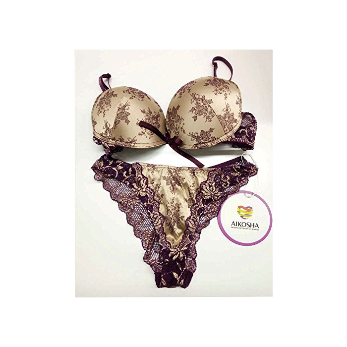 원본상품명: AIKOSHA NETWORK ブラ&ショツ + Tバックのセット商品 下着 花柄プリント サテン レス リボン 3/4カップ 上下セット 女性に嬉しい下着シリズ