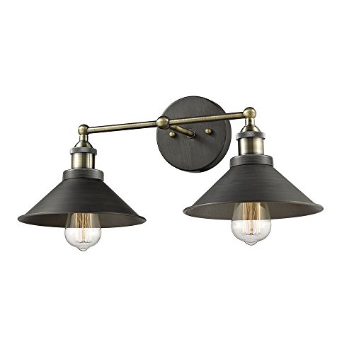 Shade has an aged, era-appropriate finish to complement the bulb