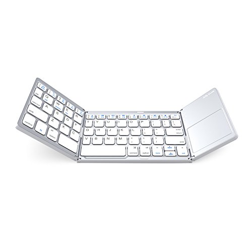 Folding Bluetooth Keyboard, Jelly Comb Rechargeable Portable BT Wireless Foldable Mini Keyboard with Touchpad for Tablet Samsung or Other Cell Phones (Silver)