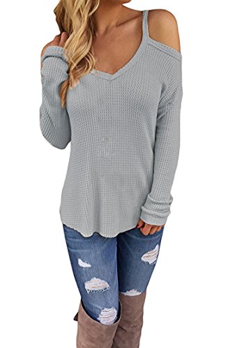 -. Title : Genluna Women's Long Sleeve Cold Open Shoulder Knitted Sweater Top Blouse