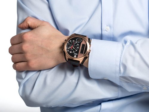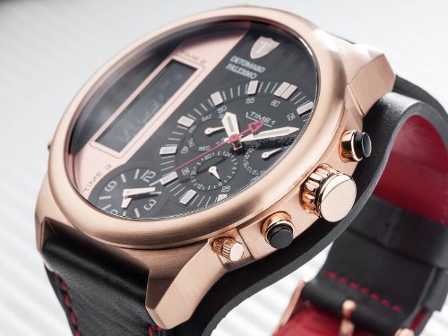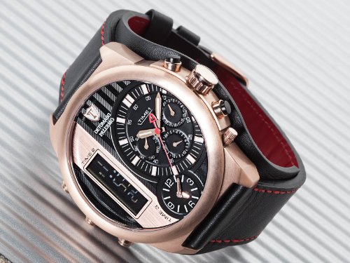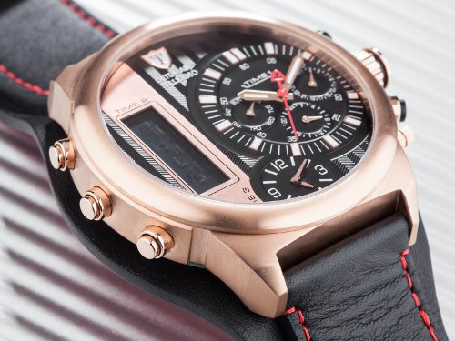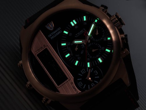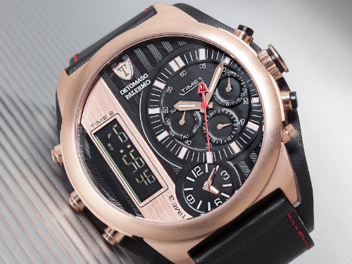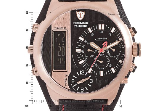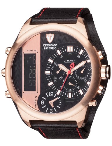 Detomaso Herren-Armbanduhr XL PALERMO Multiple-Time Redgold Leather Analog - Digital Quarz Leder DT2052-C
