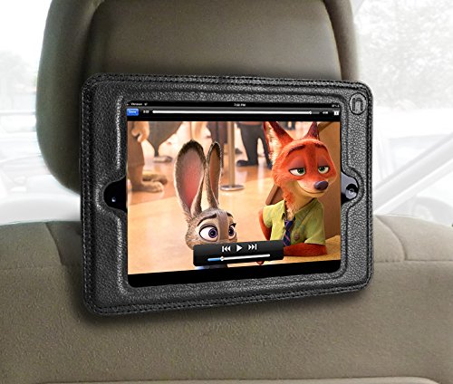 iPad Mini Headrest Mount Holder for Car- Mini 1,Mini 2,Mini 3,Mini 4.Keeps iPad in Car Secure Within A Strong PU Leather Case. Safe Car Mount for Kids