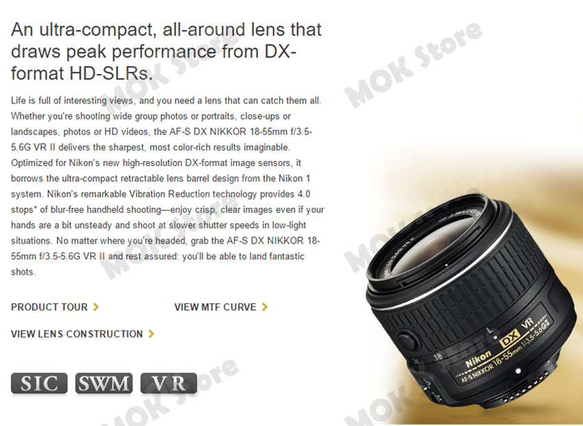 - Nikon AF-S DX NIKKOR 18-55mm f/3.5-5.6G VR II Lens