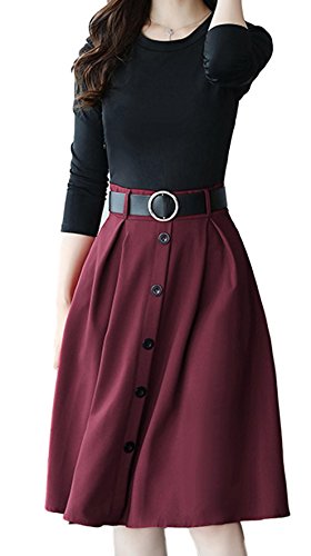 -. Title : (イレリル) 前 ボタン スカート ドッキング ワンピース ベルト 付き レトロ ロング ミモレ 膝下 丈 レディース 長袖