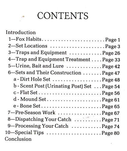 -. Binding : Health and Beauty -. Brand : DakotaLine -. Feature : Learn Fox habits and set locations / Traps, equipment and treatment to ready them for the season. / How to construct different sets. / Dispatching your catch / Processing your catch -. Label : DakotaLine -. Manufacturer : DakotaLine -. MPN : k100ftacc -. PackageQuantity : 1 -. PartNumber : k100ftacc -. ProductGroup : Health and Beauty -. ProductTypeName : HEALTH_PERSONAL_CARE -. Publisher : DakotaLine -. Studio : DakotaLine -. Title : 100% Fox Trapping A Complete Course by Dan Kroll