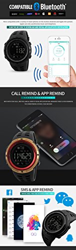 -. Feature : Functions:Time,Week,Date,Pedometer,Calorie,Aims,Call remind,APP remind,Sleeping monitor,Remind,Distance,Bluetooth,50ATM,Remote camera,Low battery indication / All product pictures using real photos, different types of equipment, while browsing will have off color, hope you can understand. / Compatible with IOS and android