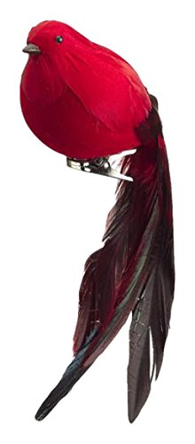 Allstate Ruby Red Long Tail Feathered Bird Clip-On Christmas Ornament, 8"