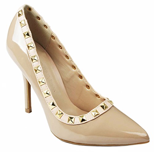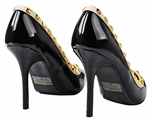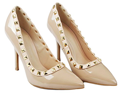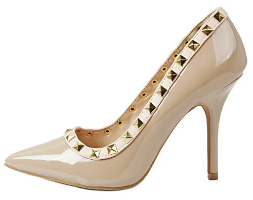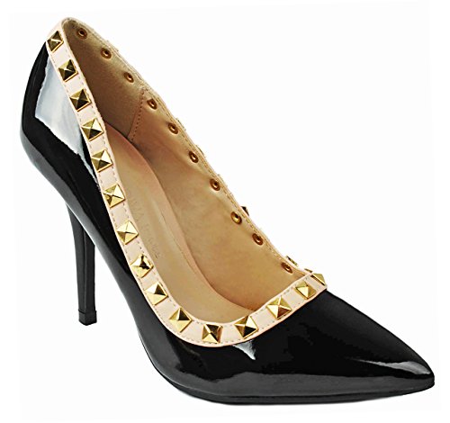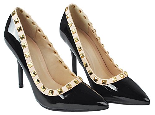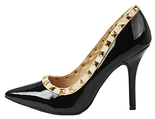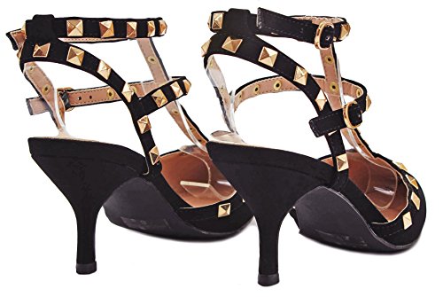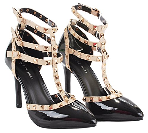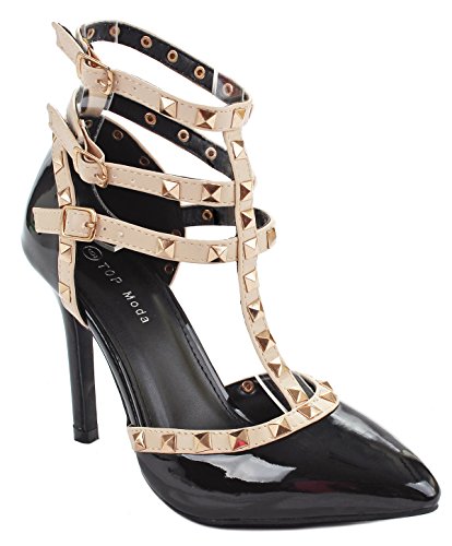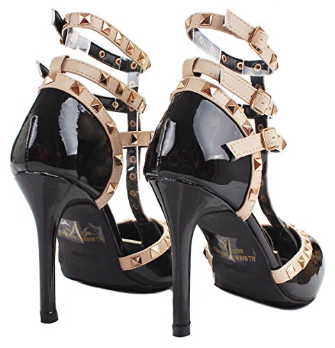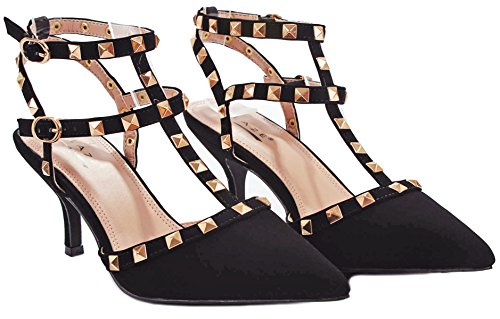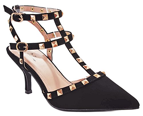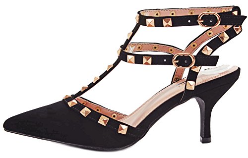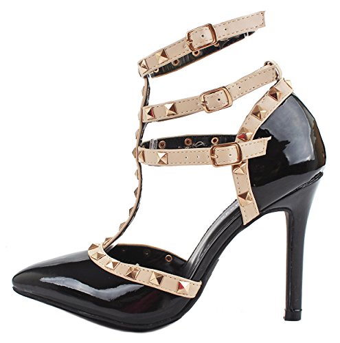 Product Description Step in these stylish and fashionable showstopper dress heels that surely will turn heads. Featuring a sexy pointy toe, T-strap construction studded with metallic rivets, ankle cuff, buckle accents, and stitching details. Finished with a stiletto heel, a padded insole, an adjustable buckle closure for better fitting. 0