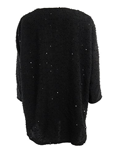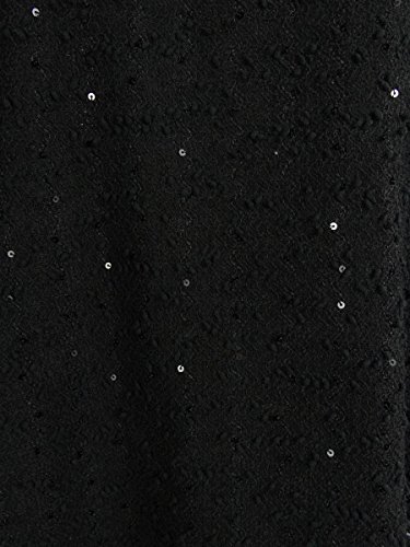 Sweater features no lining, sequined textured knit fabric, dolman sleeves, and pullover style.