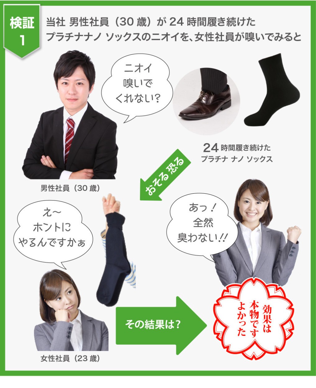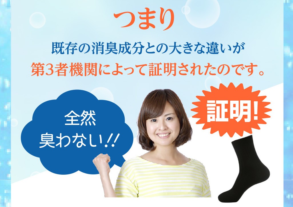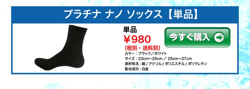 消臭効果第1位!ニオイのしない靴下で、靴下の臭いに悩まない!■革靴でムれた足■洗濯機で一緒に洗いたくない!■年々酷くなる加齢臭■ブーツ脱いだらひどかった↓↓↓↓↓その悪臭、他の香りでごまかしてませんか?自分ではうまくごまかしてるつもりでも周りは迷惑しています!!もはや 「ニオイは」社会のマナー!大丈夫です!!ご安心ください!何をやっても消えなかった「足臭」・・・・【臭わない靴下】があれば足臭は心配無用。ナント!!この「プラチナナノソックス」を『24時間』履き続けた結果・・・全然匂わない!…との報告も!!『もう靴下の匂いに悩まない!』■カラー:ブラック、ホワイト