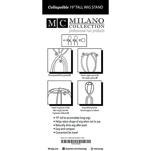 2 PACK Milano Collection 19" Inches TALL Collapsible Travel Wig Head Secure Top - Black