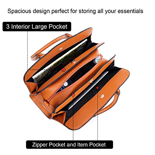 -. Feature : ✈ LARGE SATCHEL HANDBAG: Size-14.20"W x 11.0"H x 5.50"D. Handle Drop Length: 6.5". Shoulder Strap (removable and adjustable) Length: 48". It's a great size for files, folder, tablet, laptop, papers, wallet etc. / ✈ EXQUISITE DESIGN: This briefcase for women also can be used as a satchel handbag, shoulder bag, purse for women, tote bag etc. It has two soft and comfortable leather (synthetic) top handles. Matching gold tone hardware and hinges. Four bottom studs and the structured design - professional structured bag design. Many color options, black, orange, pink, brown, green, blue. Easily match for all seasons. / ✈ MATERIAL: Made from high quality PU leather - no chemical smells. The texture is just the same as the real calf leather bags, but not the same P.R.Ice. The stitching is well done and durable for long time using. / ✈ ORGANIZED POCKETS: Functional multi pockets for organizing your daily essentials. ✔ 3 compartments with magnetic snap closure. One center pocket with top zip closure. ✔ Two Interior Open Top Pouch Pockets, Exterior Back Panel Zipper Pocket, Back Interior Zipper Pocket. / ✈ EXCELLENT PACKAGE AND SHIPPING: One dust bag (which could be used as a shopping bag) and one Dasein box or Amazon box. Seriously protect the leather from damage. Great gift idea for your friends, wife, parents or yourself. ✔ 100% NO RISK Money Back Guarantee;✔Ship from Los Angeles or Amazon Warehouse;✔FREE Standard Shipping In Contiguous United States;✔Find storefront of Dasein, more surP.R.Ises are waiting for you!