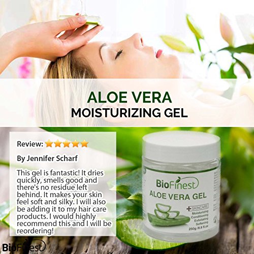 -. Title : Biofinest Aloe Vera Gel - Absorb Fast/ No Sticky Residue - Pure Moisturizer For Sun Burn/ Eczema/ Insect Bites/ Dry Damaged Aging skin (250g)