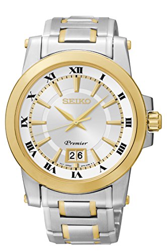 -. Title : Seiko Premier Silver Dial Two-tone Mens Watch SUR016
