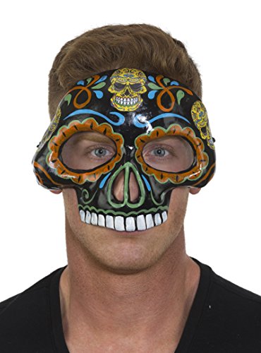 -. Brand : Endless Road -. Color : Multi -. Department : mens -. Feature : Unisex Day of Dead Mask Black Orange Paper Mache / Very cool Day of The Dead mask attaches to head with ribbons. / Light weight but very well made, beautifully painted. / This mask also makes a great wall hanging. Includes mask only. Made from Paper Mache. -. ProductGroup : Apparel -. ProductTypeName : ADULT_COSTUME -. Title : Unisex Day of Dead Mask Black Orange Paper Mache 27856