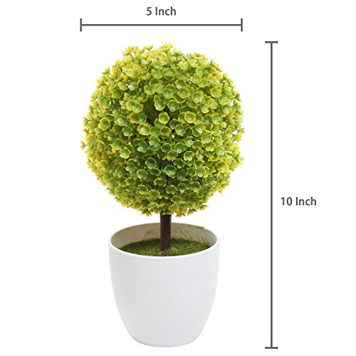 Add an eye-catching decorative accent and a dash of greenery to any space with this set of 2 lovely artificial plants. The 2 beautifully-sculpted artificial topiaries are each housed in a white plastic planter pot that will fit in beautifully with any decor. Just set these 2 artificial trees on any table, counter, desk, or windowsill to add a lovely decorative accent or centerpiece to your home, office or store.*Due to monitor variations colors may appear slightly different.*