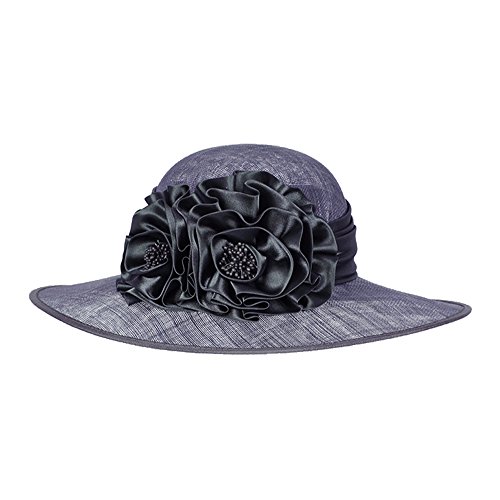 Product Description? Color : Gray ? Theme : Flower Leaf ? Crown Circumference : 23" ? Crown Height : 4" ? Brim Width : 4" ? Material : 100% Sinamay ? Two Tone Flower Centered Medium Brim Satin Sinamay Hat0